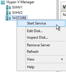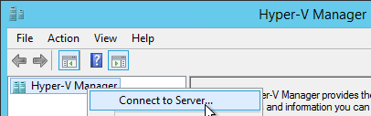 1. Right-click on the Hyper-V Manager item in the left pane and click Connect to Server…