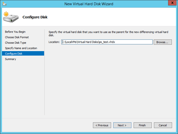 2. If you selected a Differencing disk in step 4, you’ll be asked to select the parent.