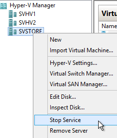 If you ever have a need to remove a Hyper-V host from your Hyper-V Manager console, you can simply choose Remove Server from its context menu. This option appears in the preceding screenshots.