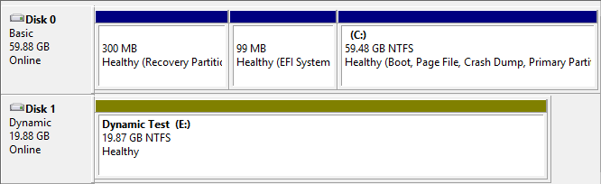 In 2012 and earlier versions, it was impossible for a live backup to be taken of a guest with Dynamic disks. By Dynamic, I don’t mean dynamically expanding VHD(X) files; dynamically expanding disks are, and always have been, backed up using the same rules as fixed VHD(X) files. Rather than use a lot of words to explain what I’m talking about, here’s a screenshot of Disk Management inside my test system: