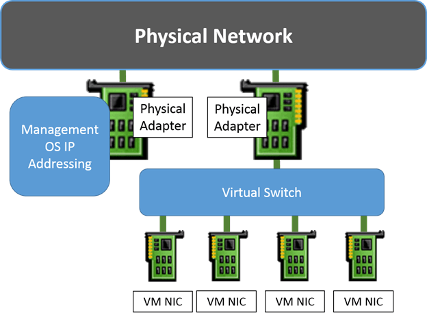 The single most important component of networking in Hyper-V is the virtual switch. There’s an in-depth article on the Hyper-V Virtual Switch on this blog, but for the sake of this article I’ll give you a basic introduction to the concept, within the bigger picture.