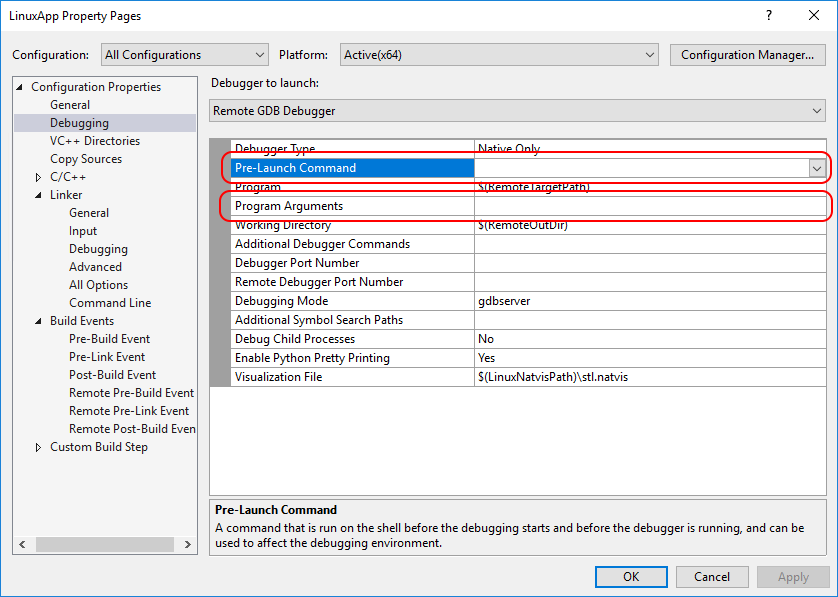 Starting a Debug Process for Linux C/C++ Code from Visual Studio
