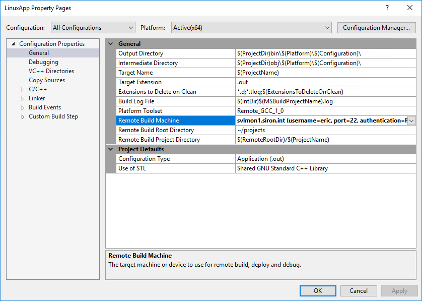 Configuring a Visual Studio C/C++ Project to Connect to a Linux System