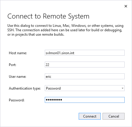 Connecting Visual Studio to Linux Using a Password