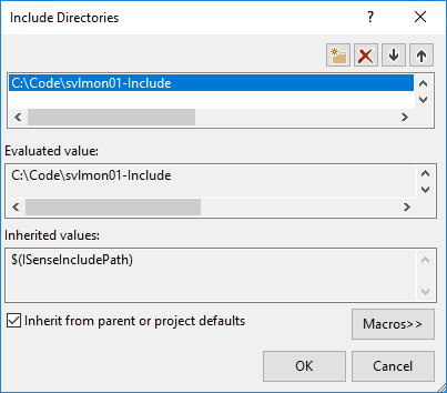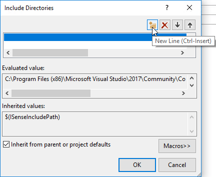 - In the Include Directories dialog, click the New Line button. It will create a line. At the end of that line will be an ellipsis (…) button that will allow you to browse for the folder.