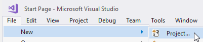 - In Visual Studio, use the normal method to create a new solution or a project for an existing solution (File->New->Project).